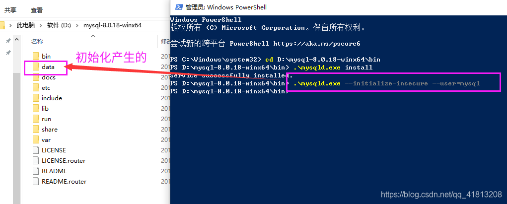 如上图会得到data文件夹,里面存放的是数据库信息,删除后数据库也不在了,需要重新操作才可