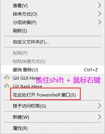 当然也可以按住Shift + 鼠标右键 会有一个powershell窗口