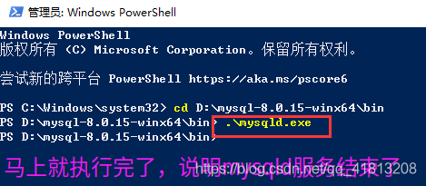 安装服务 这个mysqld实际就是mysql的服务程序,所以运行mysqld就是运行mysql服务